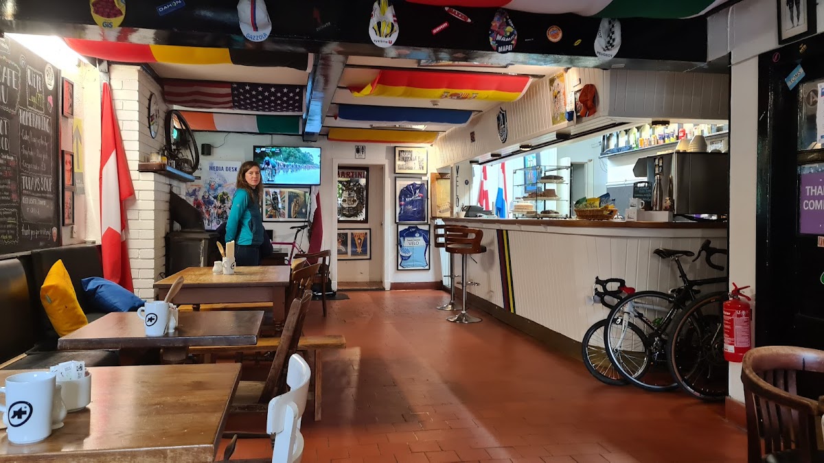 Velo Cafe embraces a vibrant cycling theme, adorned with eclectic decor that showcases biking memorabilia, creating a unique and stimulating environment for diners. The moment you enter, you're greeted by an inviting atmosphere that makes you want to kick off your shoes and unwind near the crackling log burner—a favorite feature among patrons who praise the cafe for its coziness and warmth.